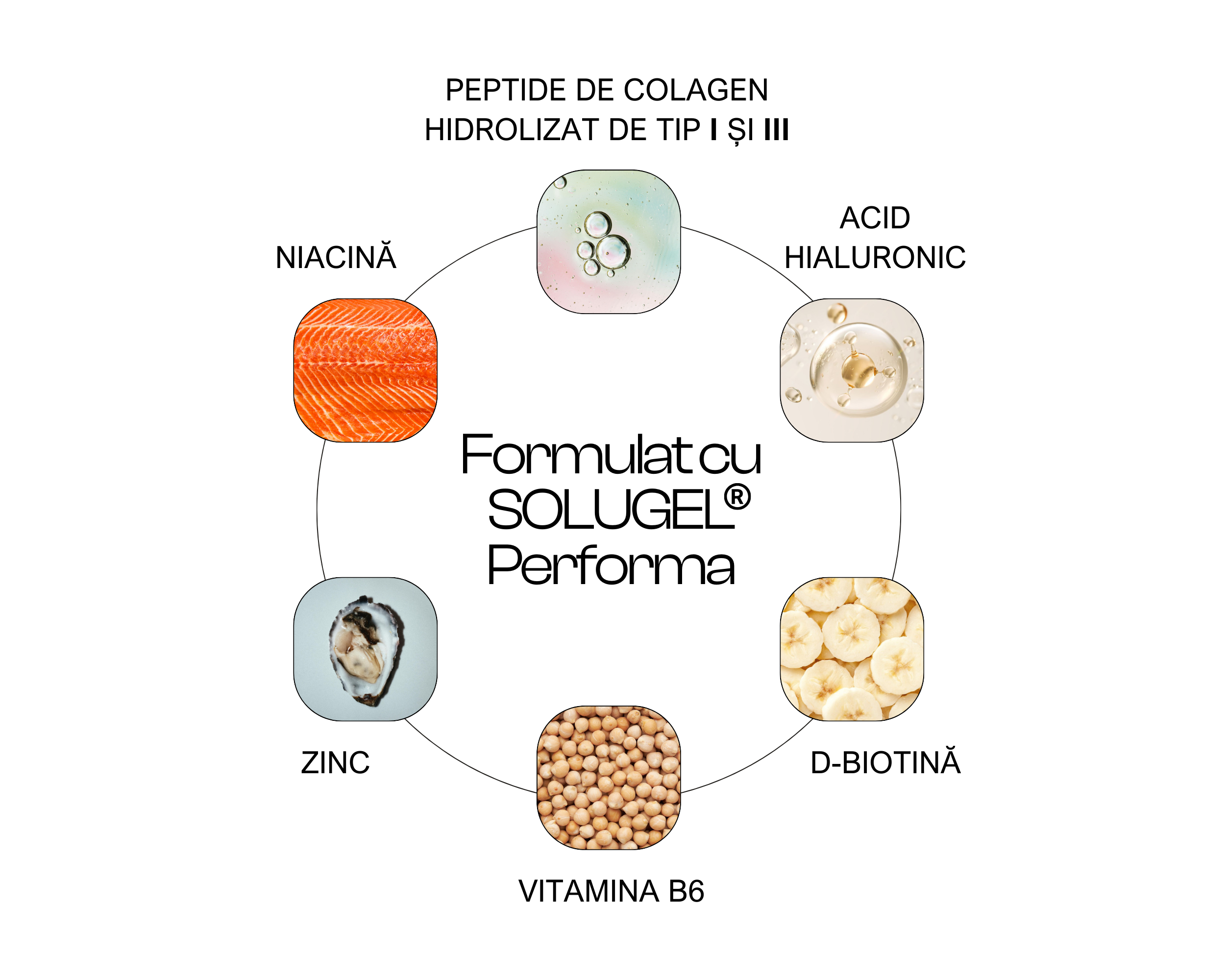 Susținere din interior, prin peptide de colagen hidrolizat și acid hialuronic, pentru o piele vizibil mai hidratată și mai elastică zi după zi.